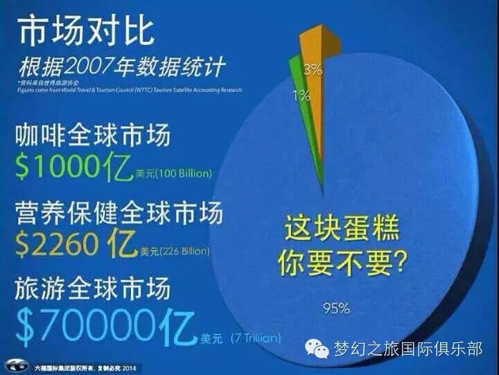 6.旅游是国际化大趋势,年产值是营养品市场的30倍,旅游直销却没有竞争,而且这个项目刚刚进入中国,我们都有当元老的先机。