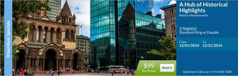 3天2夜的波士顿喜来登酒店道尔顿街39号,马萨诸塞州波士顿02199,美国在。电话:+1617-236-2000。价格是每人2名成人每间房。