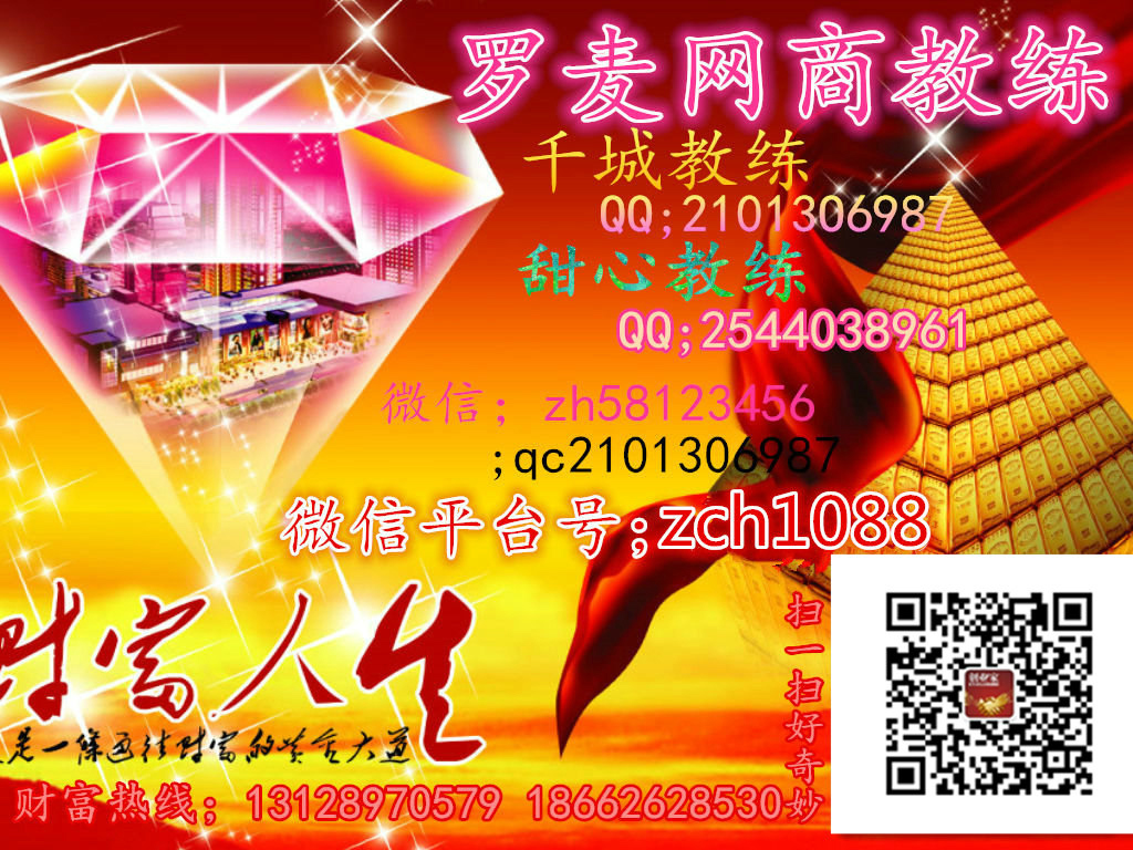 (选对老师,智慧一生;选对教练,改变一生;选对伴侣,幸福一生;选对朋友,受益一生;选对行业,成就一生。)一根网线,一台电脑+互联网,喝着咖啡,住家创业。添加罗麦甜心老师QQ2544038961,关注千城QQ1668680820掌握趋势,消费致富,分享成功玄机 ,关注微信平台;zch1088 每天有最新的财富资讯。