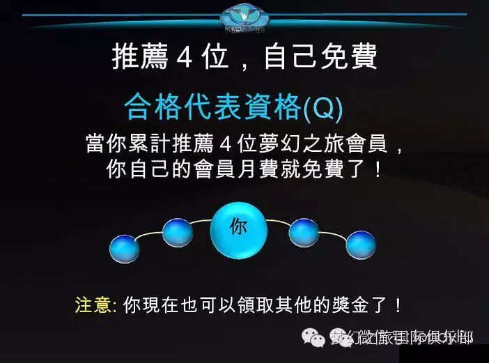 所以,推荐朋友加入梦幻之旅俱乐部的时候,一定要找既喜欢旅游又喜欢赚钱的朋友,尤其是市场初期,否则进来没有太大意义!