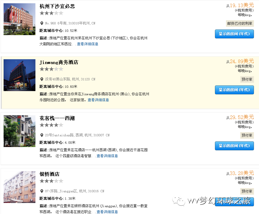 以上是杭州3-5星级酒店的价格,100多块钱你能好好享受小康生活了。