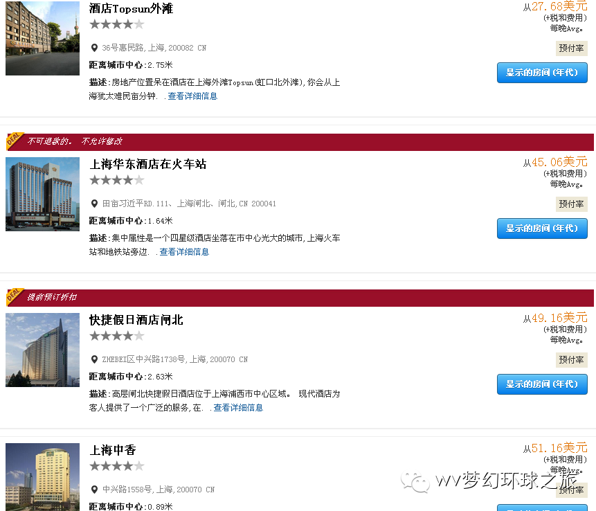 梦幻之旅俱乐部整合全球酒店、机票、旅游、船票、租车、演唱会等出行资源,采用全球会员团购的方式让你享受到高品质,低价位的出行服务,俱乐部承诺如果你在这里订购了我们的出行服务,如果有其他旅游公司或者团购网比我们更便宜的话我们将会给你差价的1.5倍退款,旅游服务将会全额退款并免费请你去玩,震撼吧。接下来我们来看看在这里订购国内多家酒店的价格吧,让你真正感受什么叫超值到爆吧......