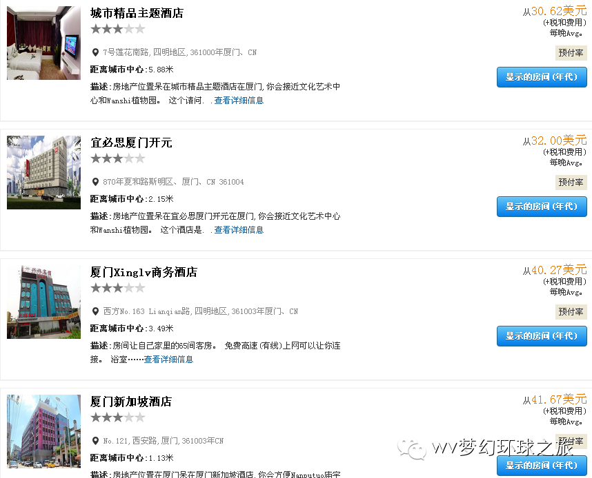 以上是厦门3-5星级酒店的酒店房间价格,来厦门这么漂亮的旅游城市,享受海风的轻拂,还可以在星级酒店度过温馨的夜晚,省钱又享受,大大节省了你的旅行开支。