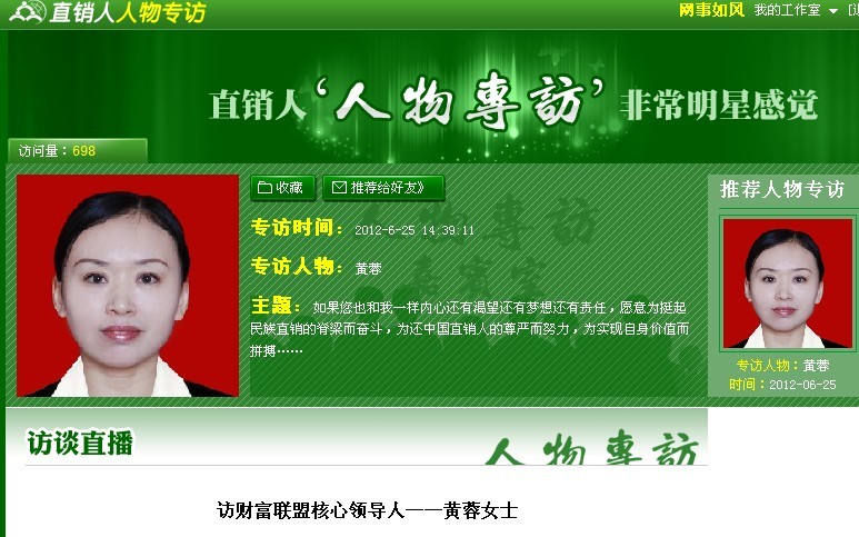 二十一世纪,网络是发展的必然趋势,网络直销,把人际关系最大化,投资风险最小化,成功时间最短化。这是天地间的舞台,是真正的成功平台。选对老师智慧一生,选对行业成就一生。尤其在这个团队合作的时代,隆力奇聚德空降财富联盟系统领导人黄蓉竭诚邀请您的合作!交流QQ2495408513,电话13882940905.