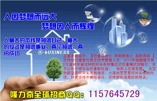 那么如果有一天,能解决这些问题,一定要从事直销这条道路,在互联网上到处搜索,看到了一个绝佳的事业先机,就像发现新大陆一样。考察一段时间果断加盟了该公司。它就是中国日化第一品牌实力公司:隆力奇电子商务。