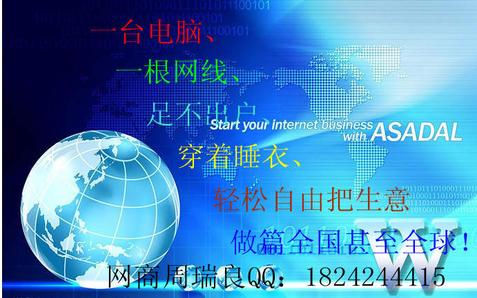 一台电脑、一根网线、一杯咖啡...谈笑间轻松成交全球生意!不出差、不囤货、不电话邀约...尽显做网商的高贵和优雅!拿牌公司、内资企业、长久平台,普通人一年打拼月入过万,直销精英三年内轻松实现百万梦想!QQ 1824244415