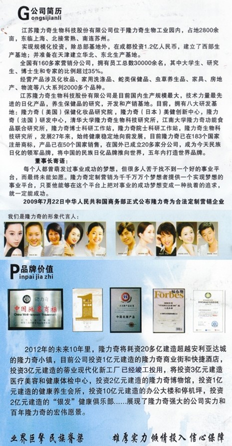 隆力奇“傻瓜式直销”:不要人脉、不要沟通、不要推销!真正实现了一台电脑,一根网线,穿着睡衣就可以 把生意做向全球!让您得到财富的同时,还拥有美丽,健康,朋友,快乐!选择很重要!欢迎咨询知音大姐 166 0964 681 全职在线为您解答所有疑虑