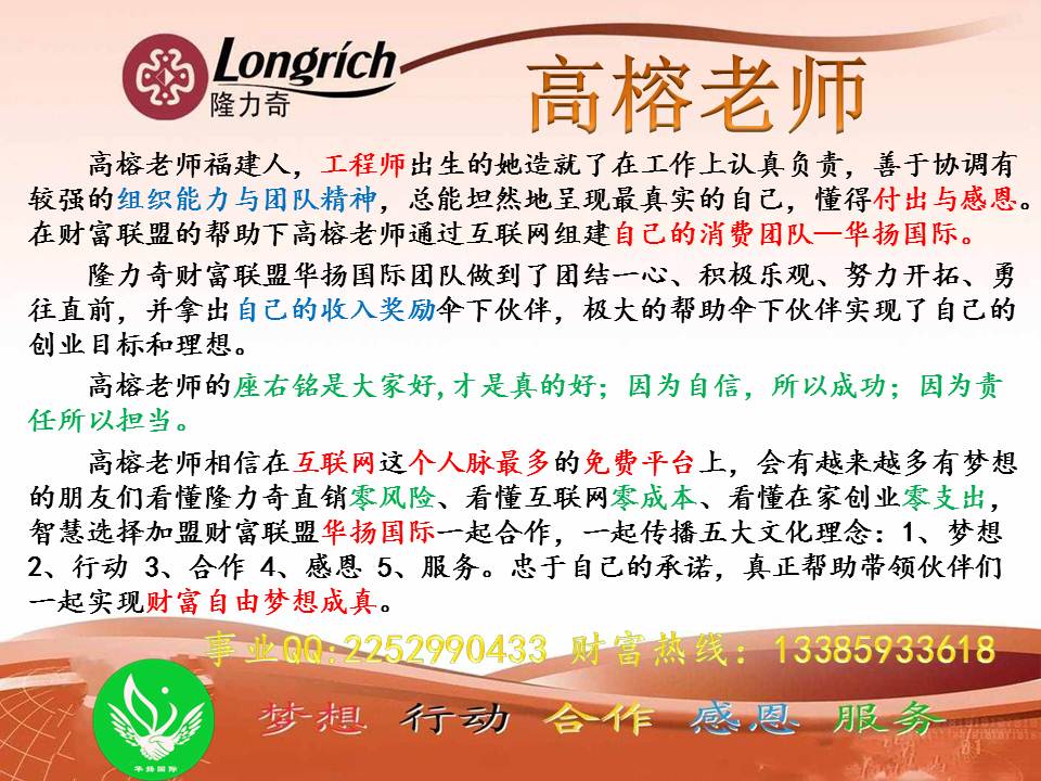 ※在您阅览后如有疑问,请您及时来电(13385933618 隆力奇直销空降-----168国际团队领导人——网络高级培训师高榕)我们会为您及时的解答。※