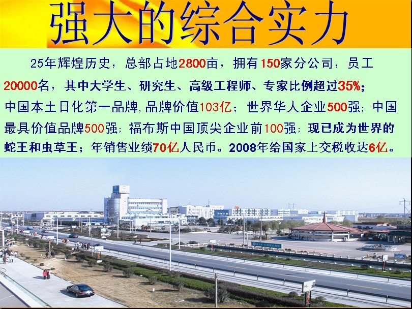 规 模:集团占地2800多亩,拥有独立的隆力奇生物工业园;目前全国有15家子公司,员工2万余名,其中大学生、研究生、博士生和专家的比列超过35%;