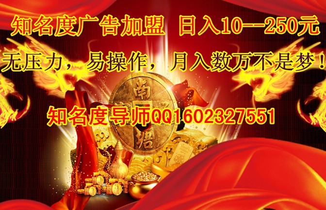 接下来介绍的这个就是赚钱项目,天天进钱的生财之道——知名度环球广告。 知名度环球广告只要你每天花上两三分钟的时间点击五十个广告就可以把钱赚到手,不耽误你正常的上班或者学习时间,两三分钟就可以点完。有得朋友可能会问,不懂,什么是知名度环球广告,是干什么的? 在这里我简单的介绍一下知名度环球广告:知名度环球广告是一家做广告的平台,里面集中了五十个知名品牌的企业(平安保险,麦当劳,肯德基,伊利,蒙牛,本田,上海大众,宝马,佳能,中国移动,奔驰汽车,百事可乐,可口可乐,雀巢,奥迪汽车,三星电子,德克士,美的,通用别克,诺基亚,苹果,海尔集团),众多企业无论是在电视台还是报纸上还是在电脑上都在不断的打广告提高企业的知名度,这时候知名度环球广告就应运而生。众多企业把广告投放在了知名度环球广告上,而我们就成了各名度环球广告的代理商,我们每天负责给他们点击广告,他们的企业的知名度在得到提升的同时会给知名度环球广告相应的费用,而我们是负责给知名度环球广告点击的代理商也可以说是操作者,这个时候知名度在把钱给我们一部分,具体的情况是这样的: