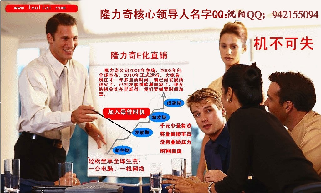 他是个有人教,有人帮,有人带团结互助的事业,不要担心你不会做,他很简单,听话照做复制就可以了。你呀,可以****,可以专职,任你选择,自由自在,有空就找各行各业的朋友聊聊天,分享分享,不影响你正常的工作和生活,在家也可以创业挣钱;单位事忙,家里事多就放一段,经营权永远也不作废,忙完了拾起来继续干,只要你相信,只要您坚持,只要你努力,只要您不放弃,您想要的一切的一切都能在隆力奇实现! - 未来是直销业高速发展的时代,排斥直销就是排斥自己成功的机会!做隆力奇不是你做不做,而是你要不要。机会已经悄悄来到你的门外,你是放过他还是抓住他,决定权在你自己手里。过这个村就没这个店了.您还在犹豫什么?人生有一种遗憾,有机会做却不去做。人生有一种悲哀,想做了却没有机会做。