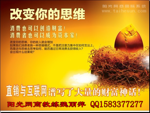 阳光国际系统创业导师魏丽萍真诚期待与你交流:QQ 1583377277