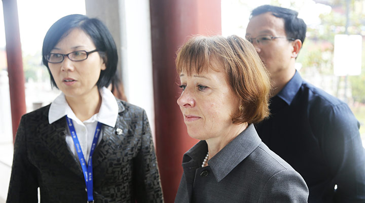 在工作人员的陪同下,先后参观了隆力奇红木馆、智能化新工厂、研发中心、爱家生活体验馆,每到一处波詹娜校长都赞不绝口。在真武观,中国道教文化的博大精深给她留下了深刻的印象;在爱家生活体验馆,看着琳琅满目的护手霜,她说要带几支回国给家人用。