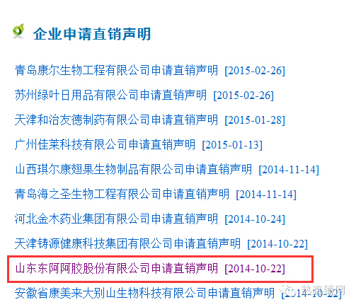 商务部于2014年10月22日发布东阿阿胶申请直销声明