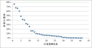 平均直销主营率下降。随着进入直销行业的传统企业数量增多,直销企业的平均直销主营率(直销销售额占企业销售总额的比例)由2013年的24.08%下降为2014年的7.36%。直销主营率超过50%的有4家企业,最高的为75.96%。