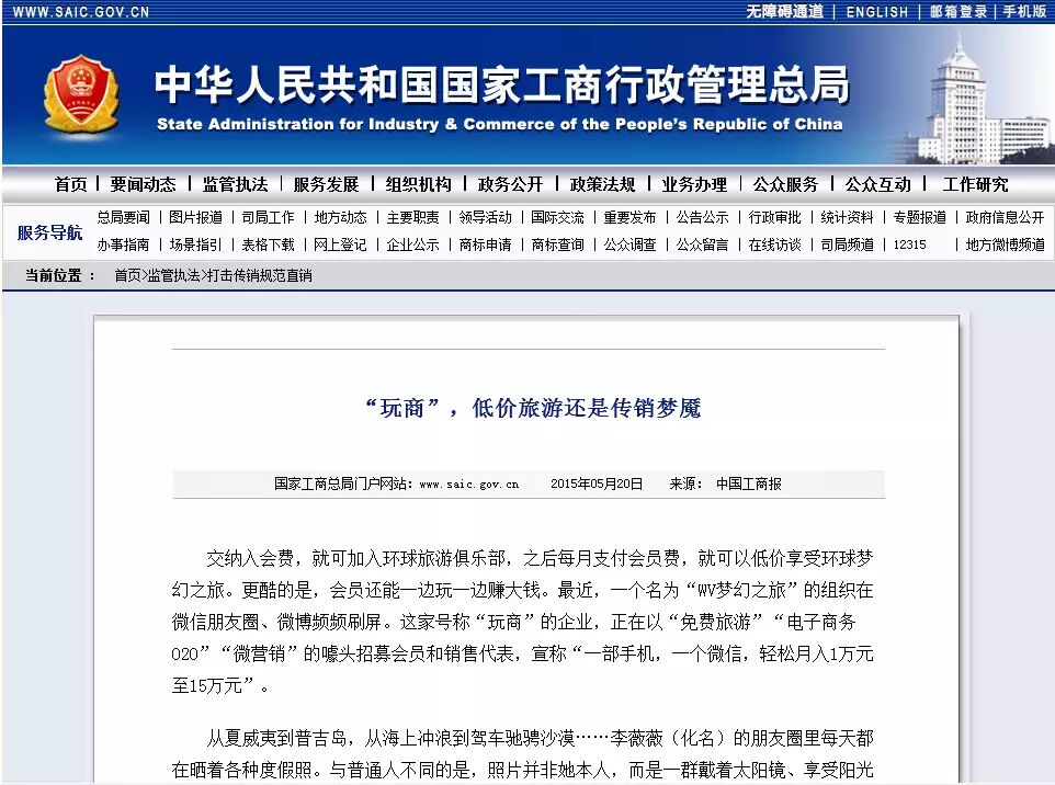 针对wv梦幻之旅,国.家工.商.总.局一锤定音为传销!