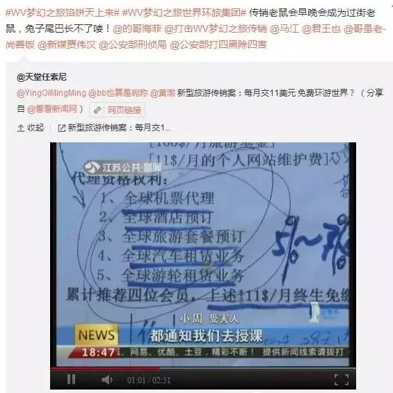 湖南经济频道播出《“梦幻之旅“结束你的梦游:梦幻之旅涉嫌传销工商调查》,曝光了WV梦幻之旅涉嫌传销。