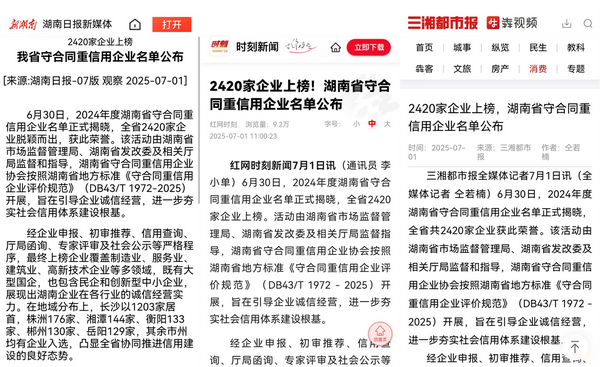 2025年6月,2024年度湖南省守合同重信用企业名单正式发布,新湖南、红网、三湘都市报等相继进行了公示报道。绿之韵集团凭借深入践行的诚信理念、完善的合同信用管理体系和卓越的综合管理水平,连续第十七年蝉联“湖南省守合同重信用企业”与“长沙市守合同重信用企业”称号。这份跨越十七载的持续认可,有力印证了绿之韵将诚信视为企业生命线、融入发展血脉的长期坚守。