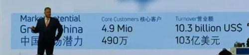 大会释放出PM国际对中国市场的高度重视与发展信心。从会议现场传出的图片来看,PM国际看好中国市场,多个数据显示其增长潜力巨大:未来核心客户数量有望达到490万人,市场潜力可能达到103亿美元。