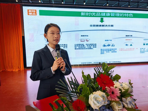 分公司讲师王娇就新时优品健康管理进行系统解析,带领与会人员学习秋季养生与心脑血管健康管理方案,提升居民健康管理意识。