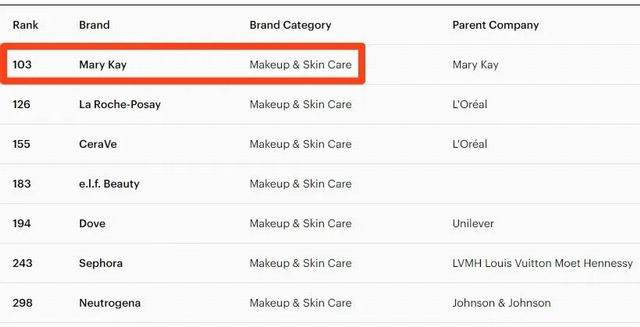 《福布斯》与全球权威评级机构HundredX合作,耗时一年,收集了3500多个品牌的380万条消费者评价数据,最终得出调查结果。《福布斯》也在2025年,历史上首次推出了“最具价值品牌榜”,在调查结果中排名前300的品牌得以进入了这份榜单,入围比例仅9%。令人惊喜的是,玫琳凯、康宝莱两家直销企业也凭借强大品牌影响力入围了《福布斯》史上的首次“最具价值品牌榜”,并且在各自所属的品类中高居第1和第2。 玫琳凯在“2025最具价值品牌榜”中排名第103位,在登榜的“美容护肤”品类企业中高居第1,多芬(Dove)和丝芙兰(Sephora)也要屈居玫琳凯身后,分别排名194和243位。另一家入围《福布斯》“2025最具价值品牌榜”的直销企业是康宝莱,康宝莱在榜单中排名第97位,并在登榜的所有“健康&保健”品类企业中高居第2,仅次于美国知名感冒药品牌Vicks。