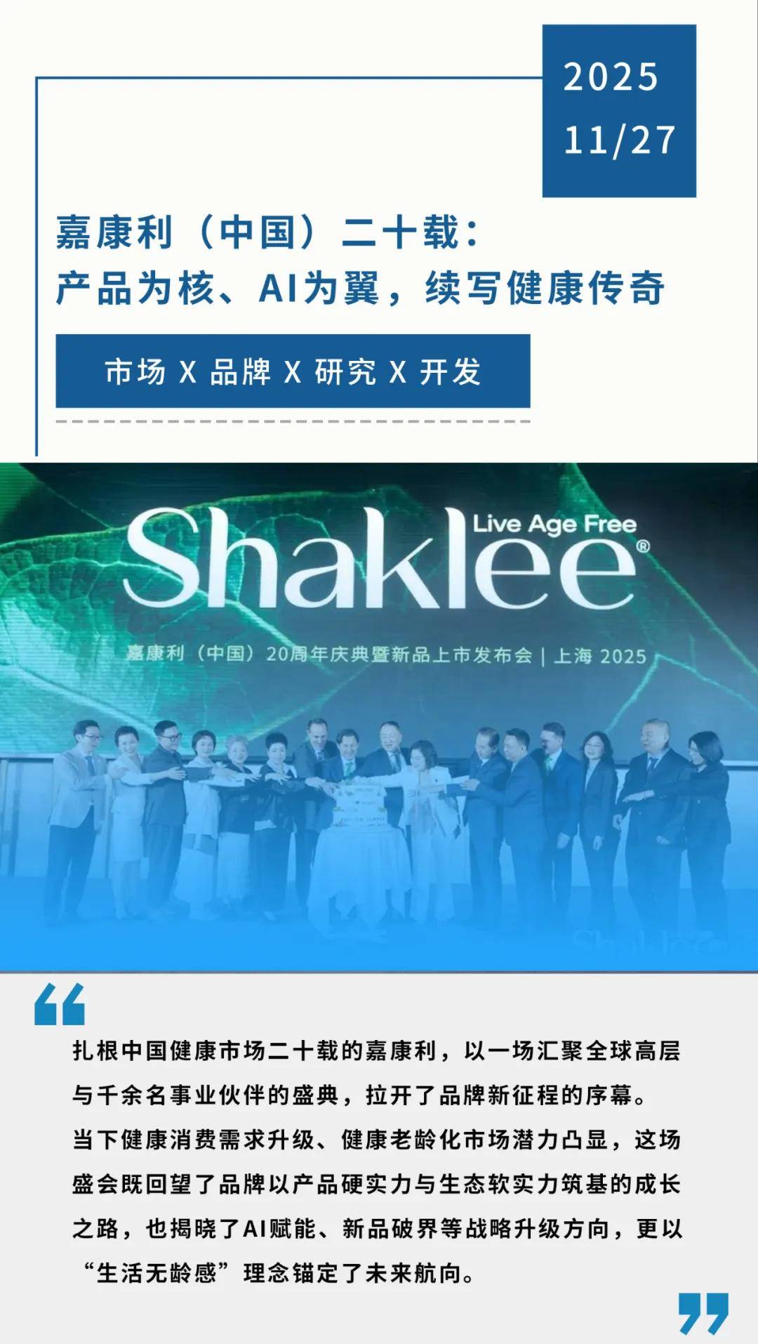 嘉康利(中国)二十载:产品为核、AI为翼,续写健康传奇