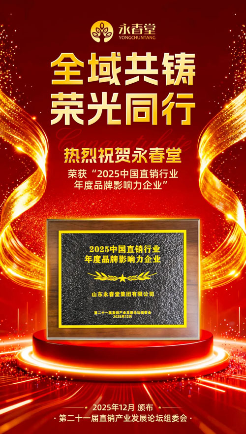 而在本次论坛的评奖环节,山东永春堂集团有限公司成功斩获 “2025 中国直销行业年度品牌影响力企业” 荣誉!