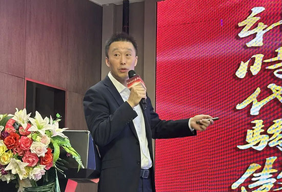公司策划总监张凯波向受表彰的新时代人致以热烈祝贺,他回顾了公司三十年来的发展历程与所获成果,聚焦“十四五”创新成果,阐述了新时优品的商业模式核心价值以及“十五五”战略发展规划,激励大家坚定信念,紧跟公司步伐,共同推动健康事业高质量发展。