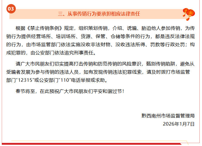 黔西南州市场监管局发布春节防传销提示 警惕新型网络传销陷阱