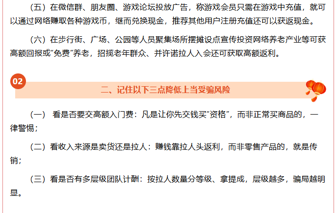 (三)看是否有多层级团队计酬:按拉人数量分等级、拿提成,层级越多骗局越明显。