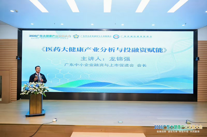 1月24日,以“投融创新·诚信为本·转型升级·共同繁荣”为主题的2026广东大健康产业发展大会在广州国际企业孵化器举行。本次大会由广东中小企业融资与上市促进会、广州市诚信建设促进会联合主办,汇聚了全省大健康产业的企业代表、专家学者等180余人,共同探讨破解产业发展瓶颈的新路径。