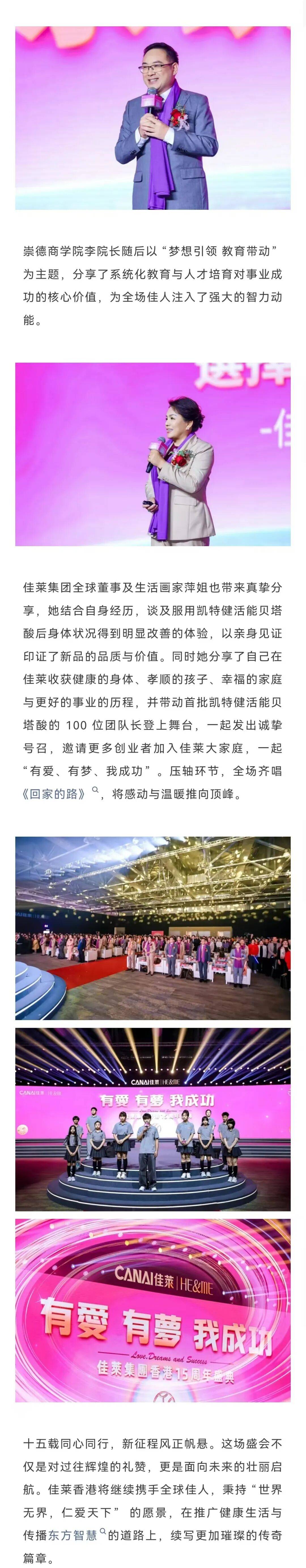 十五载同心同行,新征程风正帆悬。这场盛会不仅是对过往辉煌的礼赞,更是面向未来的壮丽启航。佳莱香港将继续携手全球佳人,秉持「世界无界,仁爱天下」的愿景,在推广健康生活与传播东方智慧的道路上,续写更加璀璨的传奇篇章。