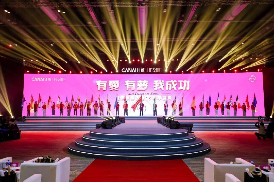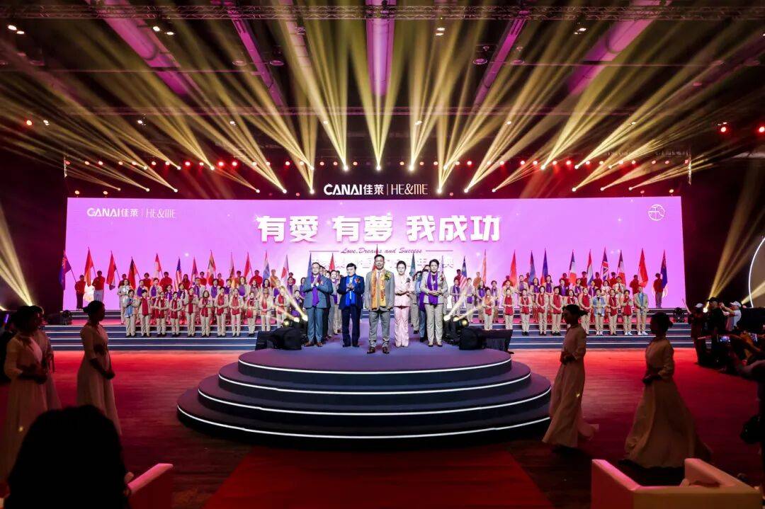 盛典在激昂的暖场音乐与全场佳人的热切期盼中拉开序幕。一场融合经典金曲与时代活力的音乐盛演,迅速点燃了现场气氛。当来自不同国家的市场代表手持旗帜,在聚光灯下荣耀入场时,全场化作一片欢腾的海洋,象征着佳莱事业版图的辽阔与多元文化的交融。