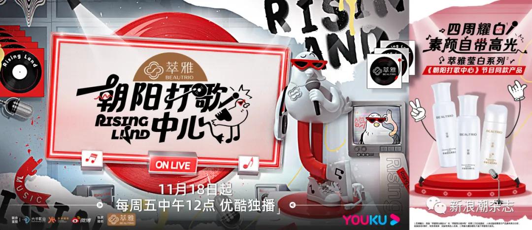 同样是在2022年,无限极旗下护肤品品牌萃雅独家冠名了潮流音综《朝阳打歌中心》以及由优酷打造的旅行社交真人秀《怦然心动20岁》。其中,《朝阳打歌中心》截至收官,在萃雅新媒体矩阵曝光超过1.7亿,全网斩获微博热搜300+,全网话题阅读量破23.4亿,#人生舞台自带高光#话题讨论量超过4千万,荣获微博综艺影响力榜、实况热聊TOP1,抖音、快手、微博、B站等平台热度皆有飙升。