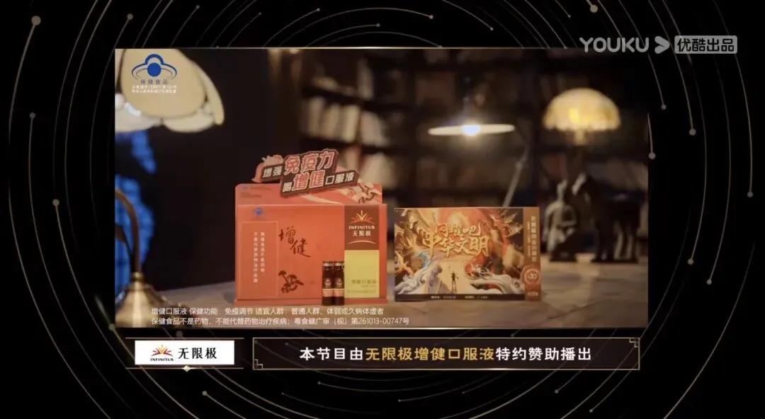 在文化传播领域,无限极2022年还特约赞助了由国家广播电视总局网络视听司、北京市广播电视局指导,河南卫视、优酷联合出品的文明探索纪实节目《闪耀吧!中华文明》,并推出联名版增健口服液。节目中,发起人陈坤和记者许丹睿化身文明追光者,走进考古现场、文明遗址与各大博物馆,直击六大文明高光,带领观众感受中华文脉的厚重与璀璨。无限极也借这一平台,传递中式养生背后的文化底蕴,实现品牌与文化传播的双向赋能。