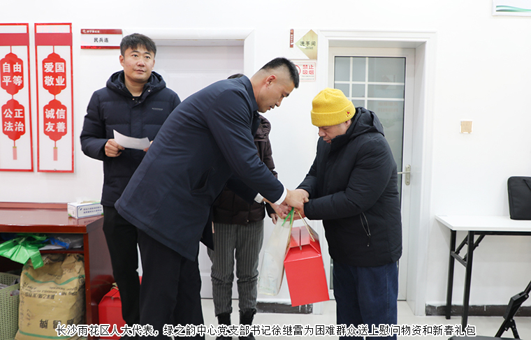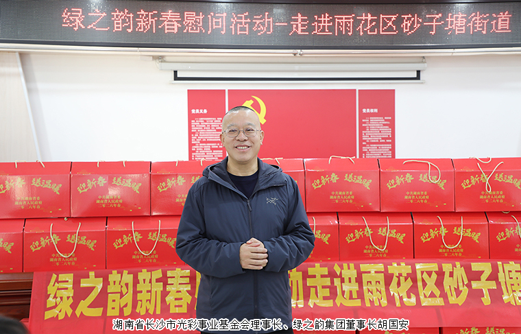 为深入贯彻以人民为中心的发展思想,积极响应“迎新春 送温暖”号召,以实际行动践行人大代表履职为民、服务基层的初心使命,2026年2月11日,长沙市工商联党组成员、副主席王准,长沙市人大代表、湖南省慈善总会副会长、湖南省长沙市光彩事业基金会理事长、绿之韵集团董事长胡国安,绿之韵集团党委书记刘云,长沙市雨花区人大代表、绿之韵中心党支部书记、湖南绿之韵酒店管理有限公司副总经理徐继雷带领爱心志愿者再次走进雨花区砂子塘社区,开展新春走访慰问活动,为困难群众送上慰问金及春节礼包,传递社会的关怀与温暖。此次活动是绿之韵公益基金会“迎新春 送温暖”系列公益行动的持续延伸,致力于在岁末年初为更多需要帮助的家庭点亮希望、送去暖意。