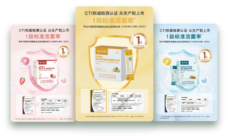 产品品质再攀新高,“高品质强迫症”贯穿始终。2025年6月,品牌上市益生菌新品畅逸槐米乳酪杆菌固体饮料,再次巩固在细分领域的先发优势。凭借独具匠心的菌株搭配与配方体系,当年即斩获“益生菌一级品认证”,成为品牌第四款获此认证的益生菌产品。值得一提的是,目前全国仅27款益生菌产品获此认证,自然阳光以领跑行业的卓越品质,不断印证品牌的硬核实力。