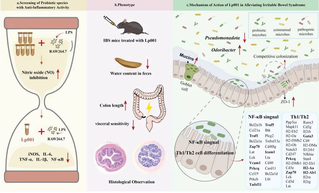 通过以上多维度的实验验证,植物乳植杆菌LPP001改善肠易激综合征的临床相关症状主要体现在: