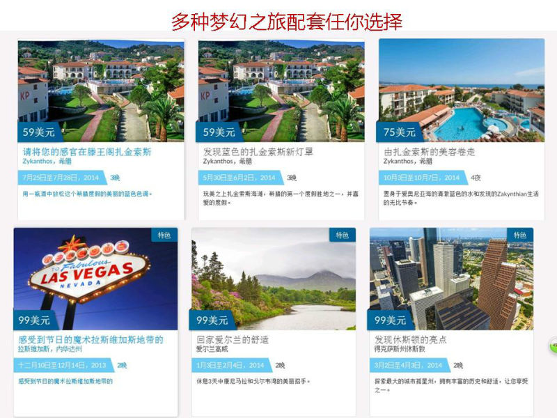 机票,酒店,豪华邮轮团,度假屋,租车、旅游路线套餐等旅游配套服务产品。